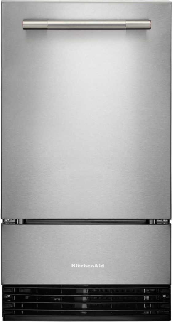 This 18" automatic ice maker uses Clear Ice Technology to produce uniformly shaped, clear cubes for any occasion. Its distinctive styling complements other KitchenAid® appliances wth Fully Flush Installation for a seamless, built-in look. The signature handle design can be personalized to your aesthetic, while the storage bin holds up to 35 pounds of ice for added convenience and entertaining needs.Read More