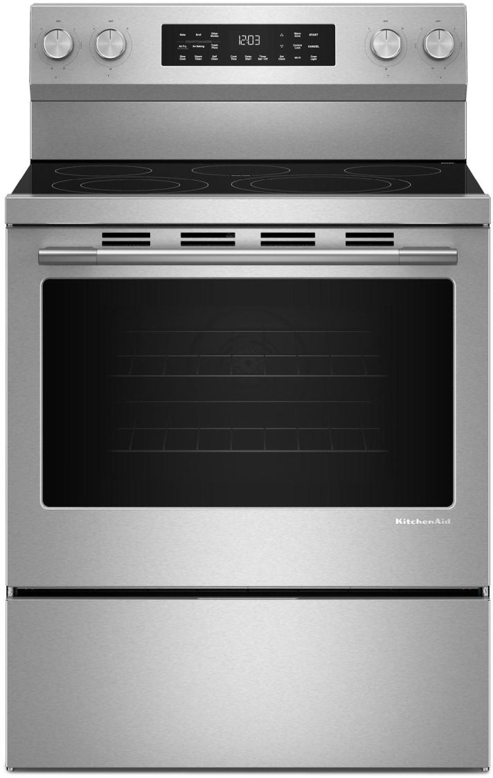 Enjoy a range of possibilities with a KitchenAid 30-inch Gas Range. A spacious 5.3 Cu. Ft. capacity and Rapid Preheat get your oven to 350°F in under 8 minutes. This Smart Appliance comes with two Even-Heat™ Hyper Elements and Convection Cooking Modes that help you achieve consistent results. Even-Heat™ True Convection features a unique bow-tie design with a heating element and a fan that circulates hot air throughout the entire oven, providing consistent results for flaky baked goods, juicy roasts, and caramelized vegetables.Read More