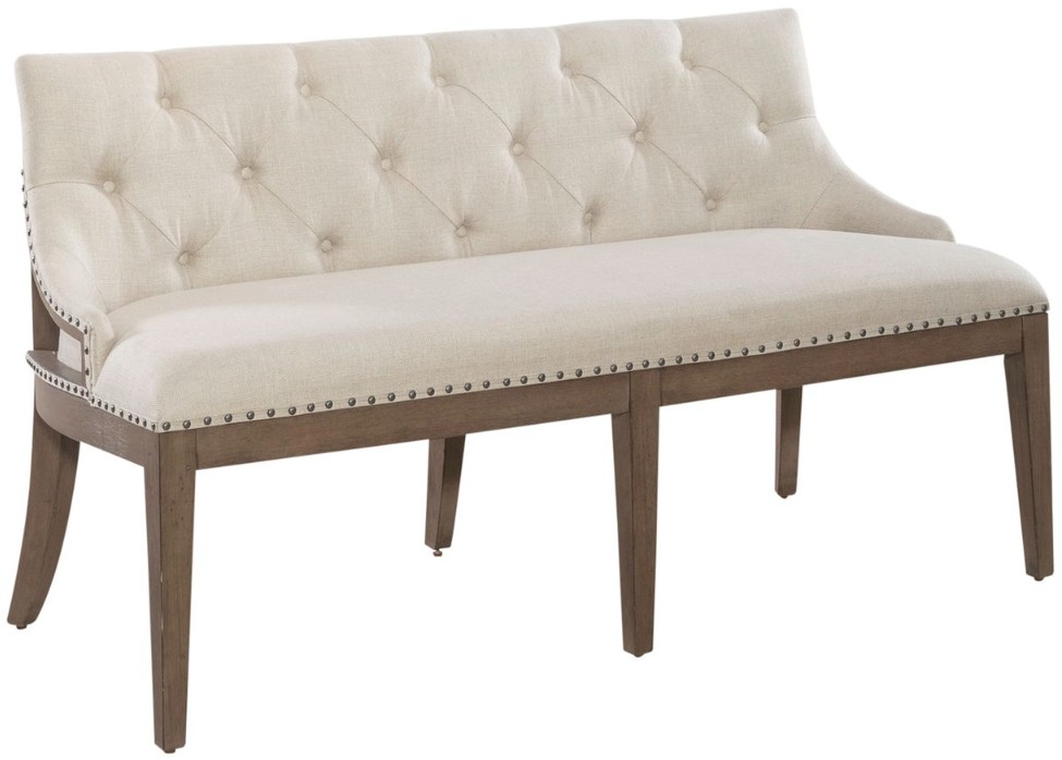 Reinvent your style and comfort with the Americana bench, prefect for any room in the house. Features exposed frame to giving you that deconstructed element, tufted back in a truffle linen fabric, nail head accents, web seating and tapered legs.Read More