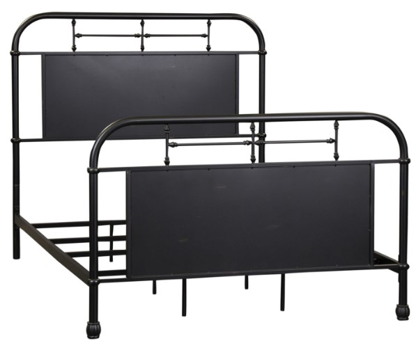 Add a unique look to your home with the Vintage series Full metal bed. Crafted of metal tube and finished in a beautiful antique black with wear thru. The headboard and footboard feature a softly shaped cap rail and turned metal spindles highlighting a center panel.Read More