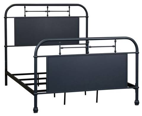 Add a unique look to your home with the Vintage Series Full Metal Bed. Crafted of metal tube and finished in a beautiful navy with wear thru. The headboard and footboard feature a softly shaped cap rail and turned metal spindles highlighting a center panel.Read More