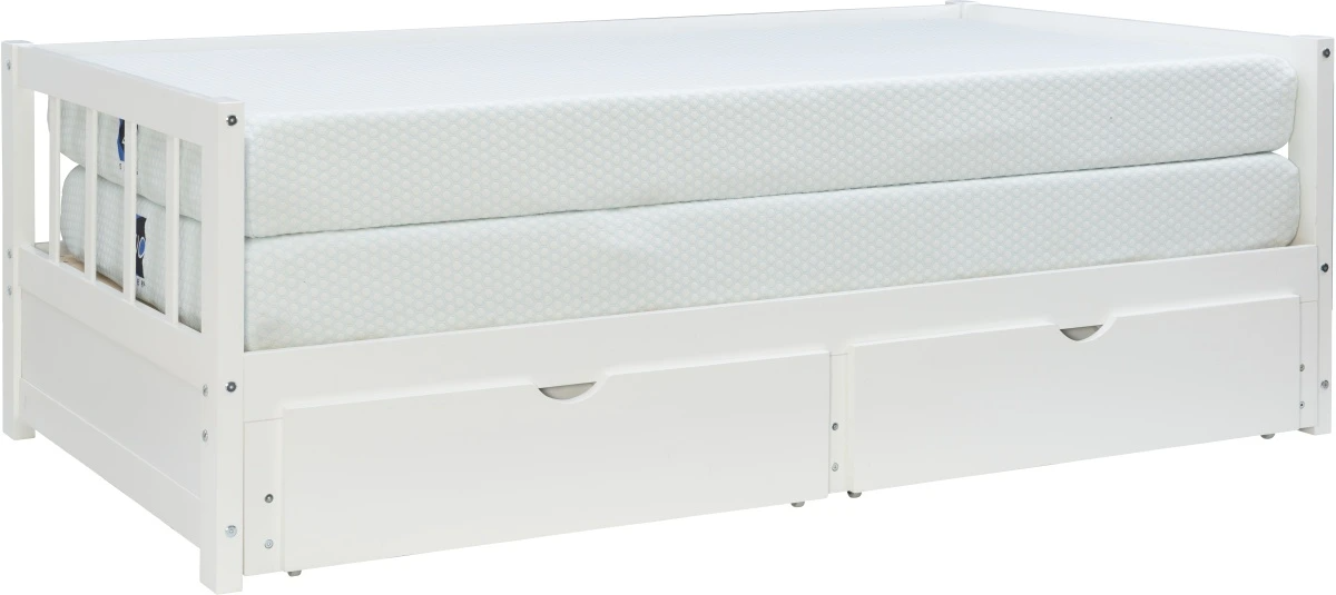 Providing ultimate flexibility for a guest room, kids room or small space living. Made of solid pine wood that is finished with a glossy white paint. Full size twin day bed frame that easily coverts to a king size.Read More