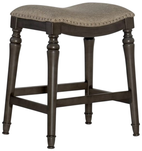 The Hayes counter stool offers a traditional yet substantial aesthetic with its dark gray glazed frame and linen-look upholstery in neutral gray fabric. Featuring a curved saddle seat trimmed with chrome nailheads and tapered, turned legs, this backless stool supports up to 400 pounds.Read More