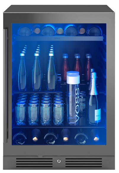 Our Presrv™ Beverage Cooler in black stainless steel is as chill as it looks and is always ready to party. A sleek alternative to stainless steel, this cooler features a Full-Extension Wood Rack to hold your favorite wine and craft brew. Convenient retractable glass quarter-shelf that gives you the flexibility to display taller bottles such as water, 2-liter bottles of soda, or champagne. New enhancements include mood-setting LED light strips in three colors and four light levels and an updated kickplate with lock.Read More